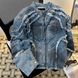 Retro American-Style Distressed Denim Jacket – Oversized Shoulder Pads, Raw Hem Fringe, Vintage Biker Look (M-3XL, Black & Blue)