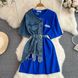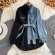 Waist Waisted Round Neck Color Block Denim Shirt Chic Casual Mid-length