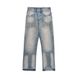 Washed Distressed Ripped Jeans for Men Street Style Frayed Design Frayed Edges Loose Casual Straight Long Pants