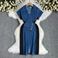 Women’s Clothing French High End Temperament Hip Wrapped Slit Skirt Summer Design Contrast Color Waist Button Decoration Denim Dress