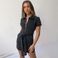 Women's 2023 new cross-border women's lace-up waist short sleeve zipper sexy pocket slim fit denim dress