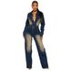 Women's Clothing 6027 Slim Elastic Flared Washed Long Sleeved Denim Jumpsuit Jumpsuit