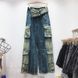 Women's clothing autumn new high waist personality pocket workwear denim straight pants women's loose slim wide leg pants cross-border trend