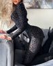 Women's Clothing jumpsuits Slim long-sleeved sexy flocked see-through slimming jumpsuits (girdle not included)_mkmklike.com