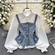 Women's Clothing Korean retro denim camisole vest fashionable layered 1 age reducing puff sleeve shirt two piece top for women spring