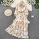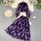 Women's Clothing light mature style, lantern long sleeves, bowknot, loose printed chiffon shirt, two-piece suit, high waist skirt