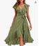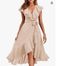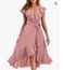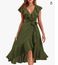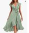 Women's Clothing new V neck short sleeved ruffled long temperament lace dress