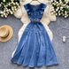 Women's Clothing Retro Design V Neck Ruffle Stitching Single Breasted Waist Slimming Temperament Knee Length Denim Dress