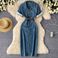 Women's Clothing Simple High End Polo Collar Denim Dress Women's Summer Belt Slim Split Design Temperament Long Skirt