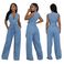 Women's Clothing Tight Waist Slim Elastic Washed Denim Jumpsuit