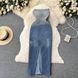 Women's One Shoulder Sheath Cowboy Waist Sexy Split Vintage Style Package Hip Skirt