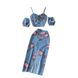 Women's retro chic suit for sweet girls, off-the-shoulder camisole, high-waisted slit skirt two-piece set