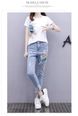 Women's Version Heavy Beaded Embroidery Short Sleeve + Skinny Ripped Jeans Suit For Women