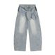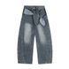 Zipper Patchwork Lace-Up Decorative Scimitar Jeans Men's Street Fashion Vibe Style Niche Loose Wide-Leg Pants
